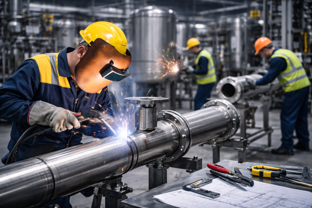 La pailería industrial facilita la correcta integración de tuberías, soportes, plataformas y estructuras con la maquinaria existente, mejorando la funcionalidad y seguridad de la operación.