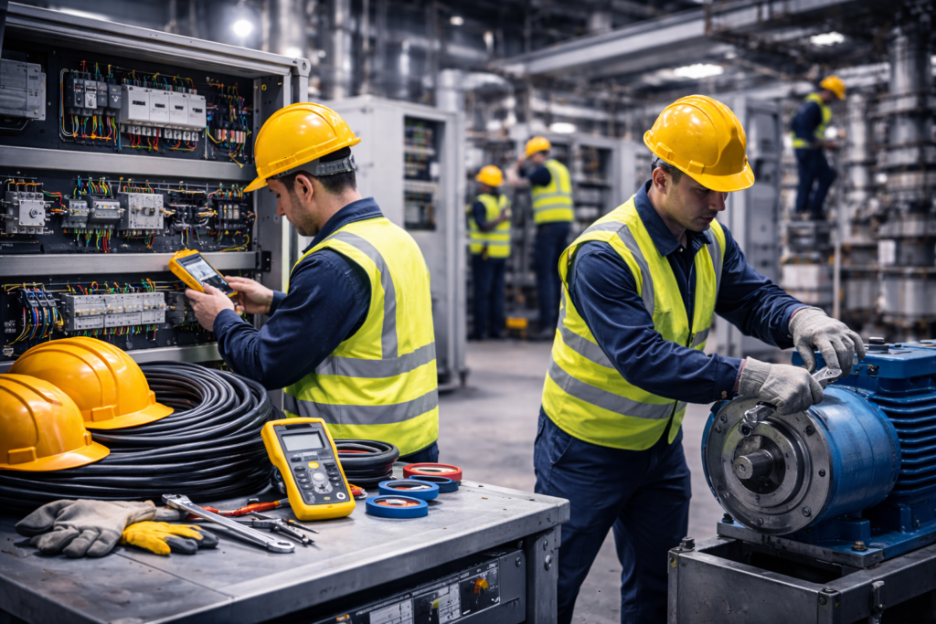 Ofrecemos servicios de mantenimiento industrial en San Luis Potosí que abarcan trabajos de electricidad de media y baja tensión, instalaciones eléctricas, remodelaciones y albañilería, así como limpieza especializada de naves industriales. Cada proyecto es ejecutado bajo estrictos estándares de calidad y seguridad, garantizando la continuidad operativa y el correcto funcionamiento de las instalaciones industriales.